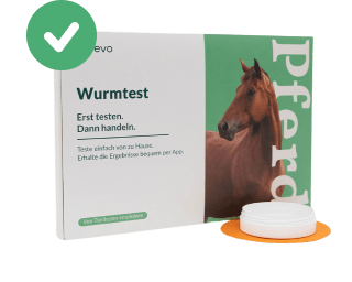 Den Wurmtest für dein Pferd kannst du einfach und stressfrei direkt vor Ort auf dem Hof oder im Stall durchführen. Ist die Probenbox nach deiner Bestellung bei dir angekommen, sammelst du an drei aufeinanderfolgenden Tagen etwa walnussgroße Kotproben, die in den mitgelieferten Behältern des Wurmtests für Pferde Platz finden. Im Anschluss scannst du den QR-Code der Probenbox mit unserer kostenlosen vetevo-App, damit wir die Proben deinem Pferd zuordnen können und übersendest uns per Post die Proben, die wir anschließend in unserem hauseigenen Labor auf unterschiedliche Wurmarten untersuchen. Das Ergebnis findest du nach wenigen Stunden in der App und kannst von hier aus, gleich die richtige Medikation bestellen und erfährst mehr zur Dosierung.